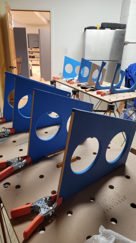 Glue-up and driver installation went well. I did have the help of my son to accelerate the gluing process and help me to stand up each tower for final clamping.
