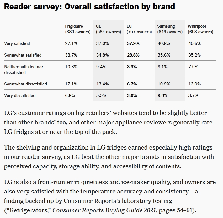Wirecutter, the NY Times review supplement, has a recent article "The Best Refrigerator Brands of 2022".