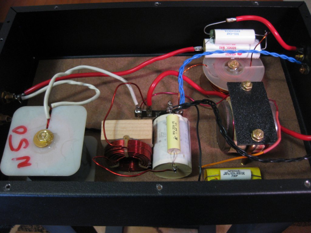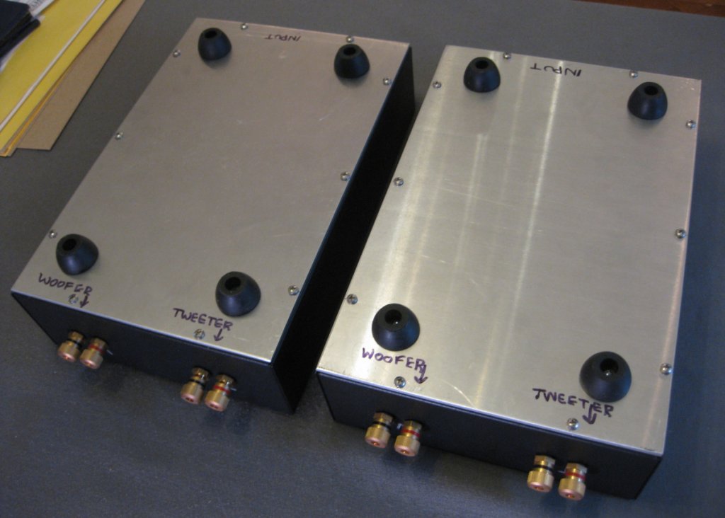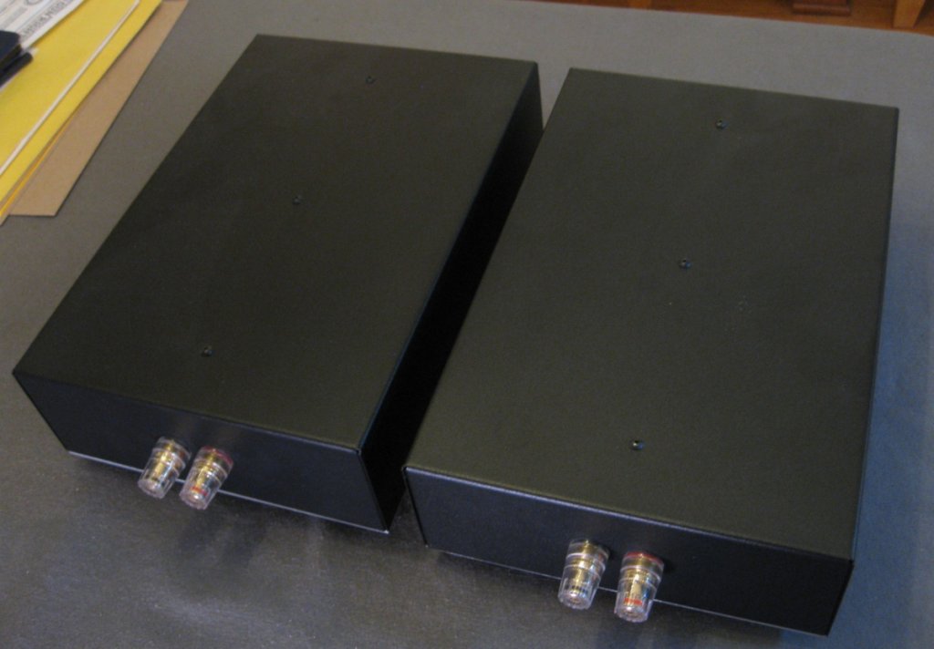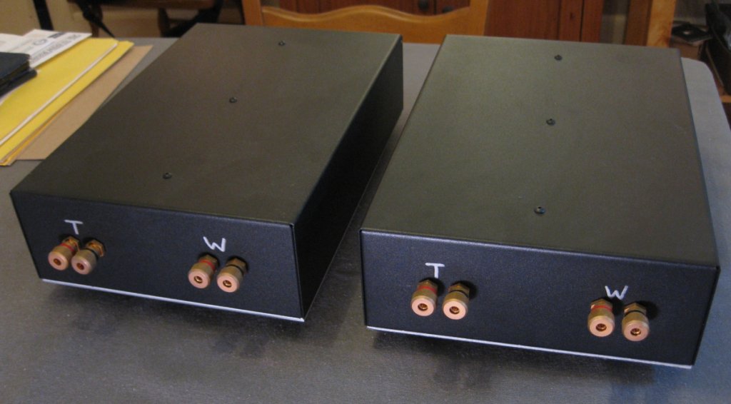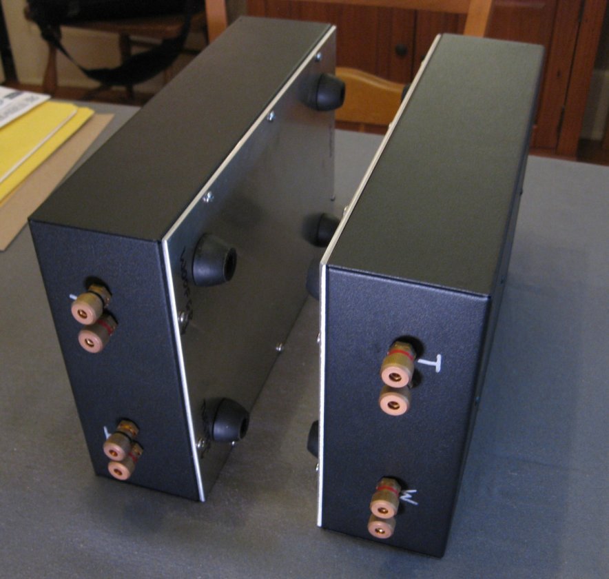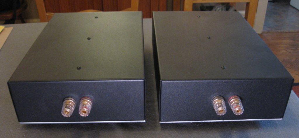 As you can see, these were built for bi-wire. All the writing on the chassis was done with Sharpies, so that it can easily be removed.