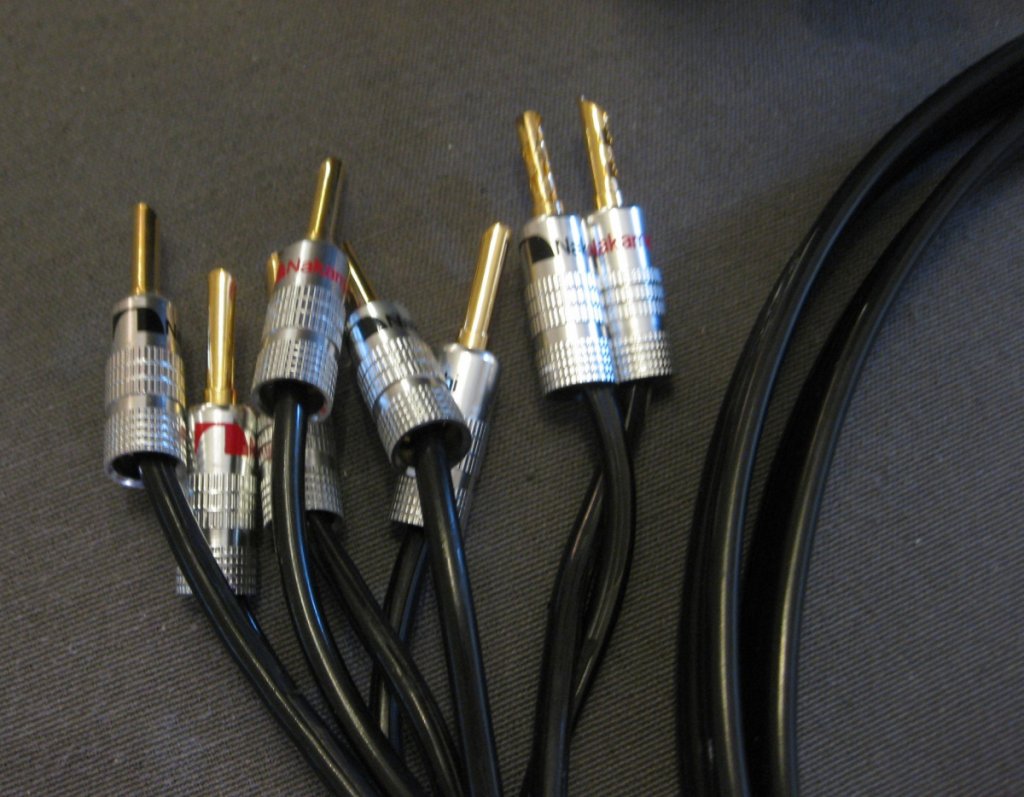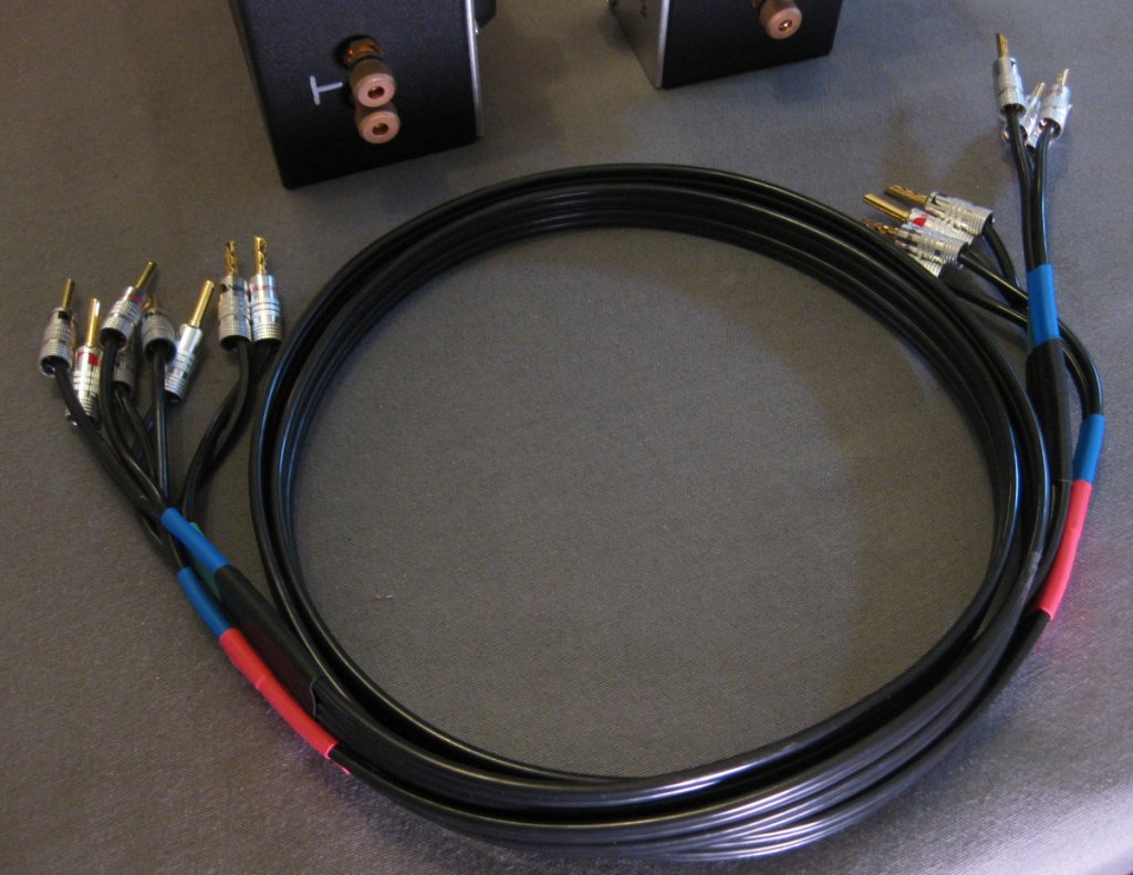 As for the cables, they're fairly heavy gauge. I don't know the manufacturer. I did compare those with arguably higher end cables in the same place (btwn crossover boxes and the speakers) and heard no significant difference.