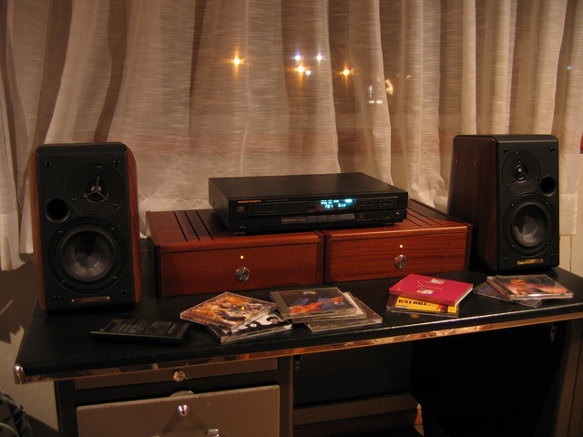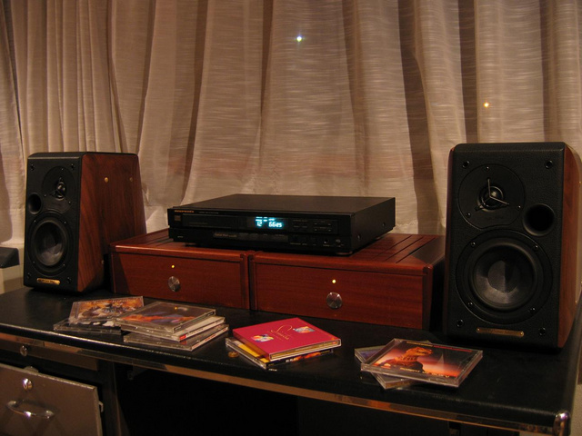 The speakers are Sonus Faber Concertino. I got them on special discount at the local audio store as the current model is discontinued. Very nice sounding, for smallish rooms with a tendency to jazz+classical sound. Just what i needed for now...and the looks...woooowww