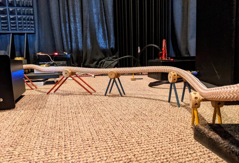 I remember when I first tried cable risers, my system was off.  When I lifted the last bit of speaker cable off of the floor, my tweeters went nuts reproducing the static charge as the cable was lifted.  A thing that made me go: Hmmmmmm.I could tell you the changes I heard, but I won't.  People that care and are interested will try this. The scoffers will just taunt.  So be it.
