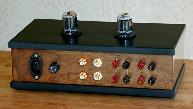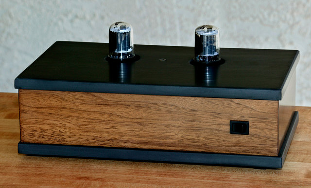 The preamp has some unusual features. In addition to the 2 regulator tubes in back one can order 1, 2 or 3 sockets arranged nicely in front of them.  A single 9 pin socket is configured for the standard 12 series and 6DJ8, 6BQ7 tubes we all know and love. Or it can be ordered with two 7 pin sockets for the popular single triodes like 6HM5, 6C4, 6J6, 6J4. With the 3 socket configuration you can have both single triodes or double triodes by installing whichever you desire at the time. There are also some Western Electric tubes I am looking into.