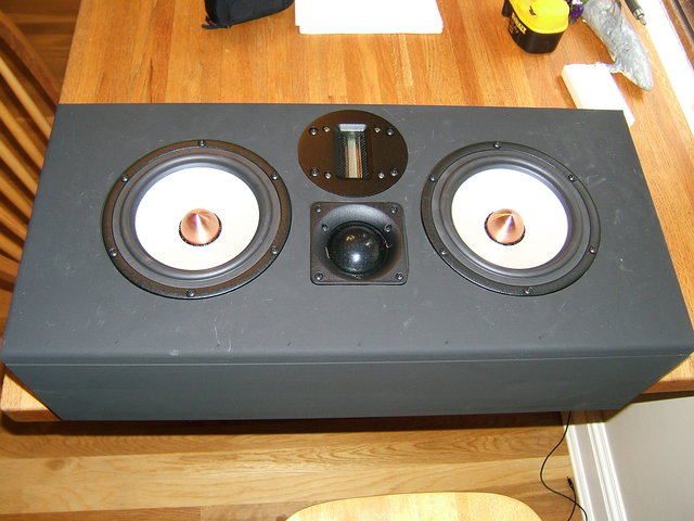 The result - phenomenal sound. Everything I had hoped for and more. These are the first Selahs I've owned or even listened too - having bought on Rick's internet reputation. I am not disappointed. Everyone who has heard them has been very impressed. The sound is awesome even without any low end bass to speak of. My old subwoofer died and I'm still working on the new one. It's a TC-3000 in a sealed 21" cube made of 1" MDF, driven by a Behringer EP2500. That speaker will see the light of day so I am covering the cube in Sapelle Pommele veneer. I bought enough extra veneer to cover a pair of surrounds and a pair of rears that I'll get from Rick once my bank account recovers.