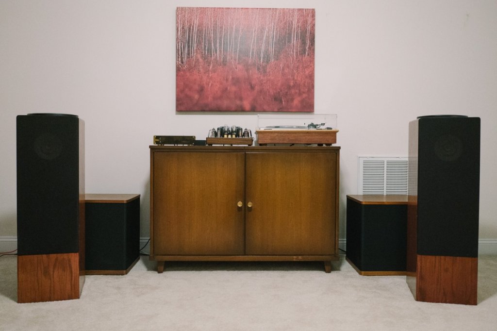 200Hz horn BMS 4592 mid compression driver 6L6 set amp, Raal 140-15D tweeter driver 300B, Eminence alpha 15 OB/open backed box driver 6S33S push pull. TT not in use at time of pics, Denon dvd/sacd player