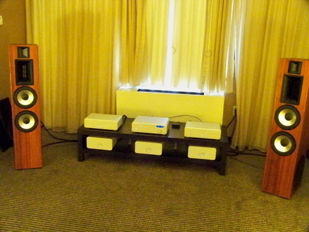 AJ's Soundfield speakers sounded great. Relaxed, detailed, with excellent soundstage, with a killer bass that you don't hear, exactly what a great sub system should sound like, invisible until needed. I'm not sure if I like the way they're voiced, but I'd need more time to decide.