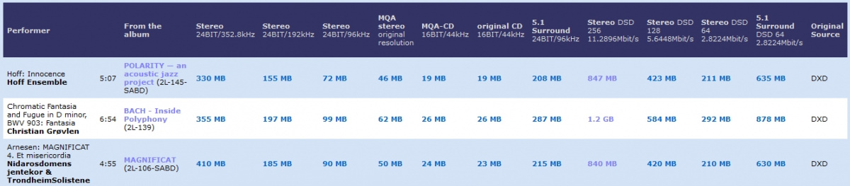 "2L record in spacious acoustic venues: large concert halls, churches and cathedrals. This is actually where we can make the most intimate recordings. The qualities we seek in large rooms are not necessarily a big reverb, but openness due to the absence of close reflecting walls. Making an ambient and beautiful recording is the way of least resistance. Searching the fine edge between direct contact and openness - that’s the real challenge! A really good recording should be able to bodily move the listener. This core quality of audio production is made by choosing the right venue for the repertoire, and by balancing the image in the placement of microphones and musicians relative to each other in that venue."11 different formats are available. "From the album" has links to all the album covers and info. No registration required. Malwarebytes Premium will question your choice to download from a foreign location but the files are clean and safe.