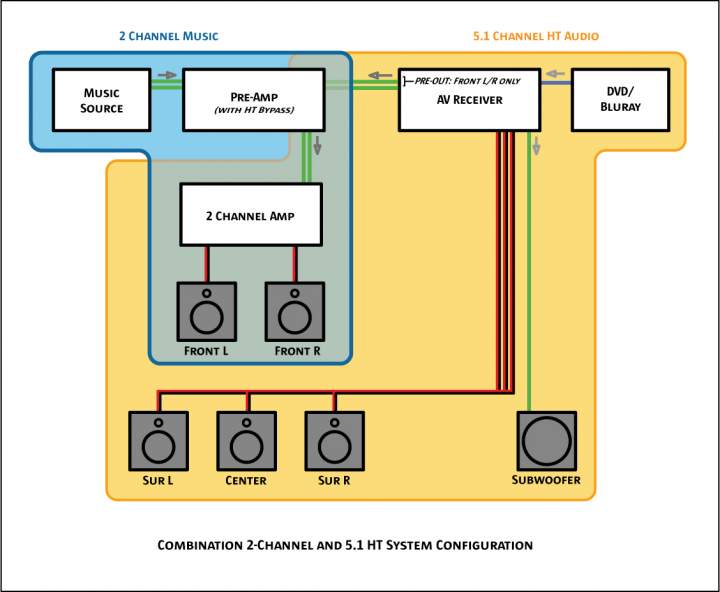 ...STILL NOT CLEARWhich Tube Pre-amp are you using that has 6.1 inputs? are you using the tube pream for TV/MOVIES, etc or just 2-channel music?I have had a tube preamp with a second amp connected to my Denon 4306 AVR ( only for 2 channel music - see diagram here , but your description of your cabling between the source BR/DVR to preamp AND preamp to AVR is not clear,sounds like a lot of cables.
