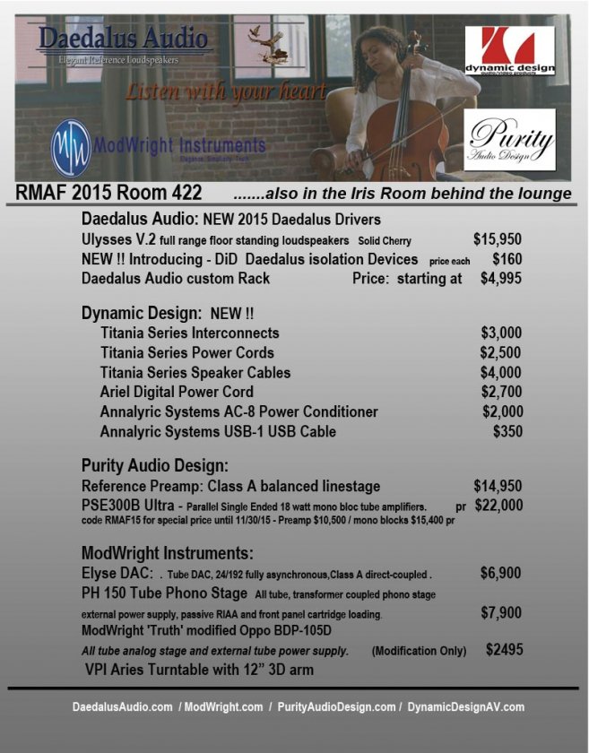 Here is the Daedalus Audio show list of equipment for each room :thumb: