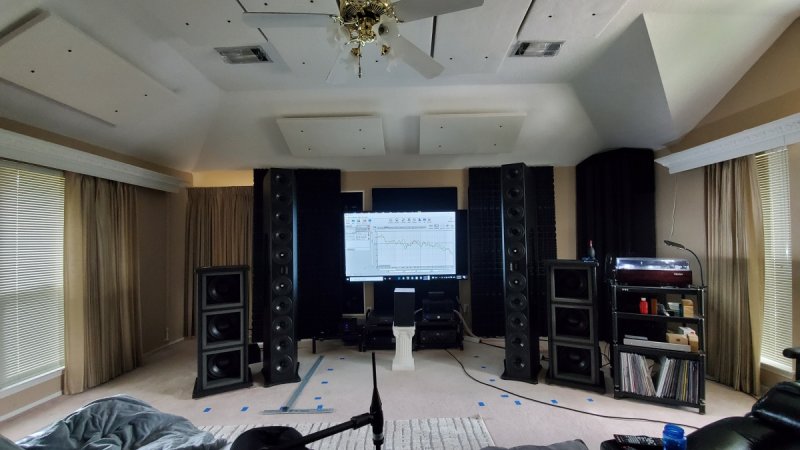 I have all my acoustic panels in place and I made some measurements over the holiday weekend.  Here are some photos and charts.