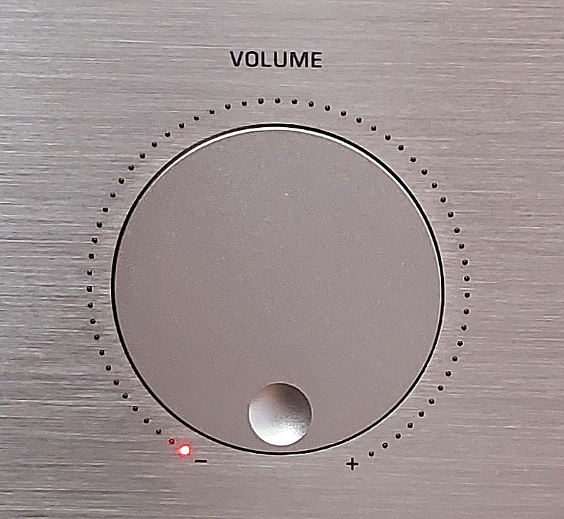 pinpoint LED on the volume knob, or with a ring of pinpoint LEDs around the volume knob. I have a Shanling A2.1 integrated amplifier that has the latter, and it’s quite successful. I’ve attached a poor phone-quality photo - it’s better looking in real life (no LED flare, etc.), as it’s functionally useful without being blinding at night (it’s in the bedroom.)