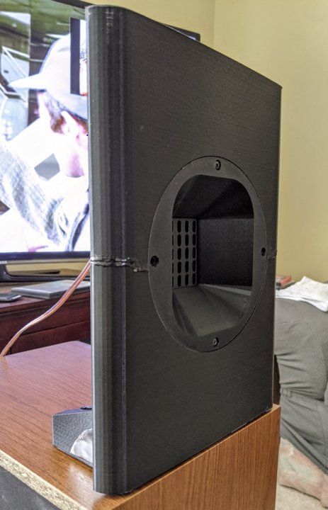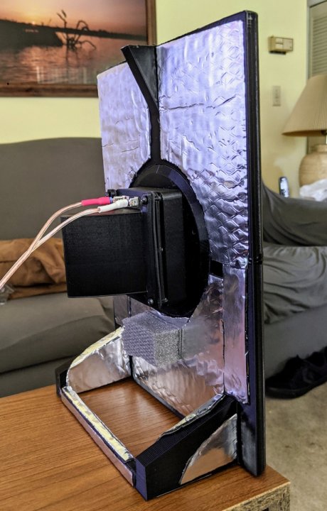 Here's the test baffle/waveguide, with a dynamat product on the back to reduce resonance of the plastic.