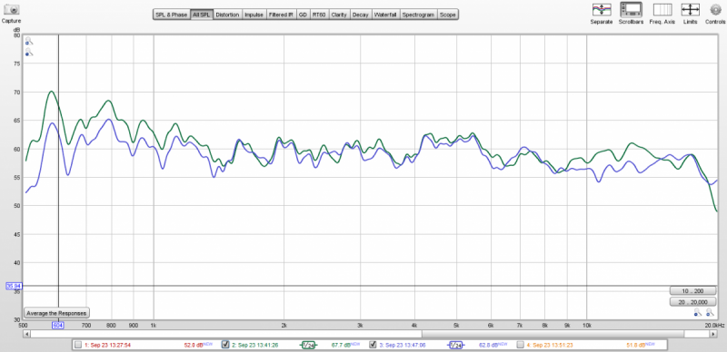 I'm honestly impressed, they both measure well. And quiet consistently to one another, esp in their OB/dipole config!