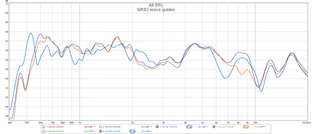 Otherwise both new and old wave guides are pretty similar with a moderately more even response, except for the steeper dip at 9-10K Hz