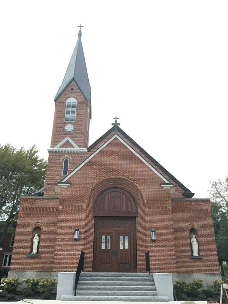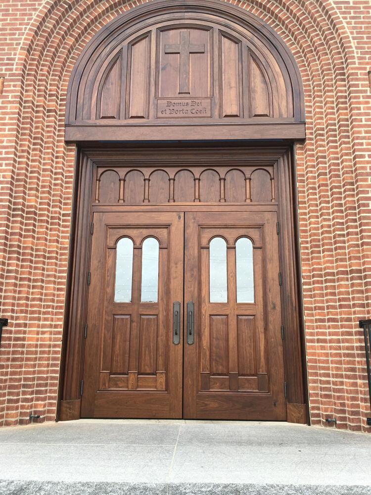 The walnut St. Remy Church entry with tympanum in Russia, Ohio I designed and made are stained with the Sherwood BAC Chestnut Wiping Stain