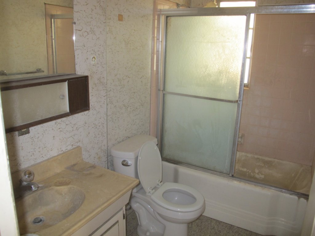 Original 1950's bathroom, the swan shower door and pink tile are classic. I bought the house "as is". The owner got real old and stopped cleaning, the tub looked toxic.