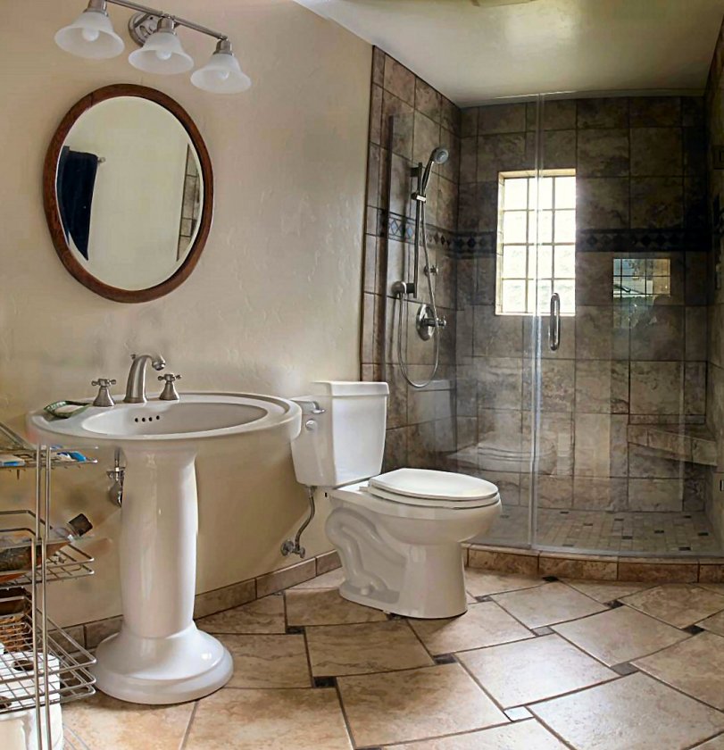 The downside is the price. The Jado cross handle lav set retailed for $688, I paid $361. The pedestal sink is $420, I paid $250. The shower valves and trim was $751. The installed glass shower price was $995, it's probably double that now.