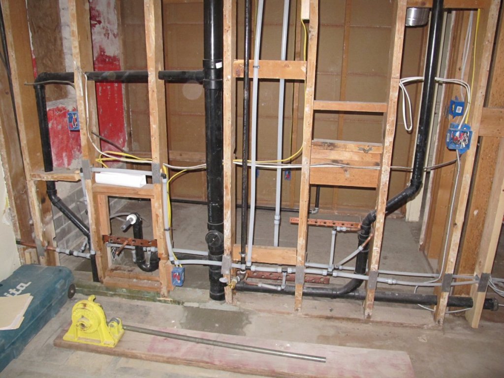 ALL the bathroom hardware has to be at your house when the plumber arrives. The layout for a pedestal sink is different than for a vanity. Shower plumbing depends on the valves and type of shower head. Older homes did not have a bathtub vent. You only get one chance to do it right so all the tub plumbing has to be re-done, i.e. big hole in the floor. All electrical needs a ground wire with GFI outlets.