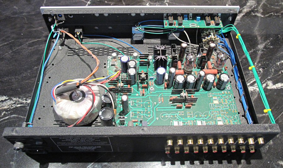 "Note that the Fet Valve preamp has a bit of a back to the future design aspect. We used a very similar topography with some earlier Ultra hybrid preamps, but before devices were available to make them perform as well as our current design does. A drastically better mos-fet device, additional high voltage regulated power supplies (three per audio channel - - two for each tube, plus another for the mos-fet), a better layout and other useful circuit improvements make the Fet Valve preamp the best we have done.