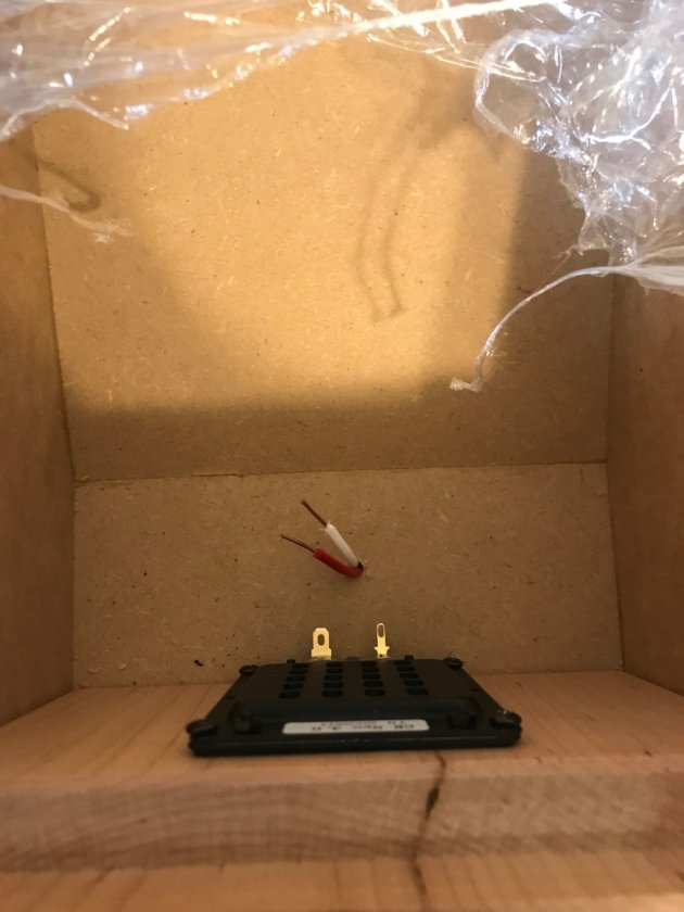 I put the crossover in with the large inductor towards the back. Gets a bunch of CA glue underneath and four small screws to secure it.