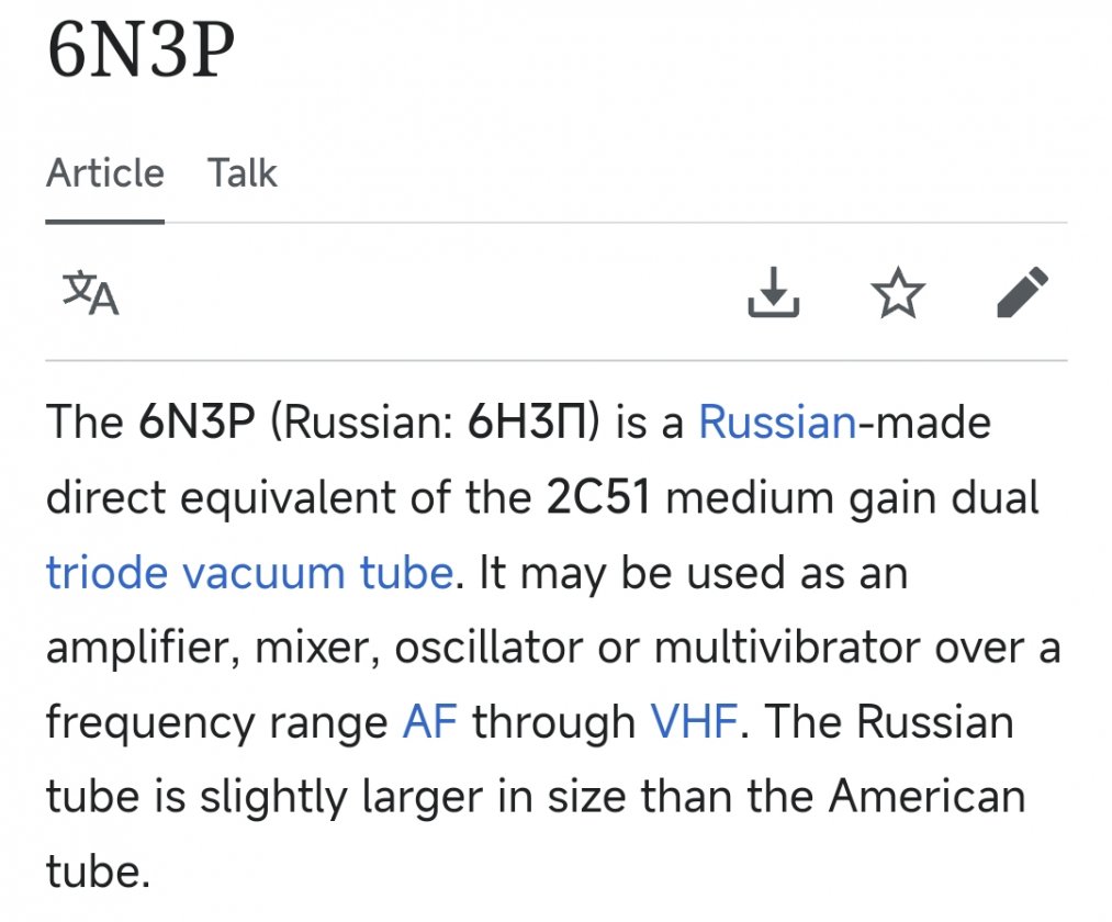 So are you now saying the two Russian tube designations above are different tubes and a Russian 6N2P will work fine replacing a Chinese 6N2 and the Chinese 6N2 uses pins 4 & 5 for the heater/filament just like the Russian 6N2P ?