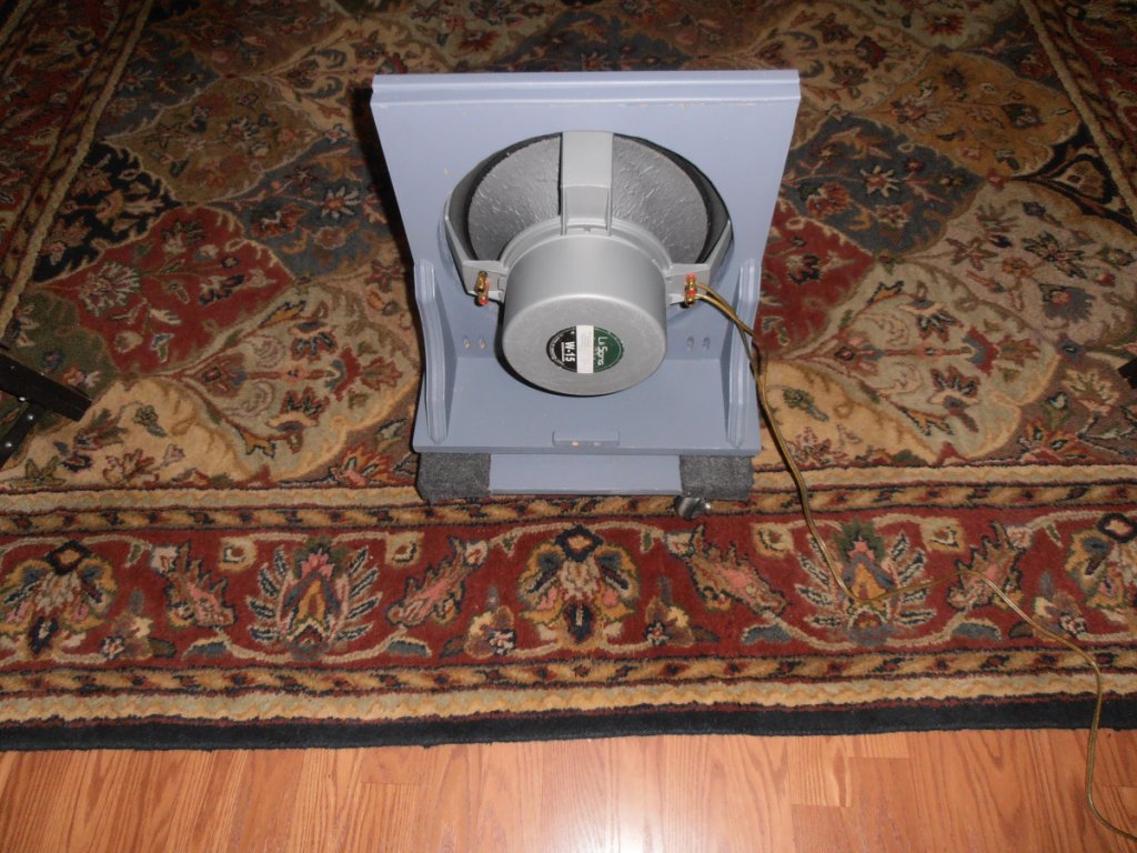 I finally mounted the beast in it's own baffle. To get a decent amount of support I went with two 3/4" plywood panels glued together. It's so difficult to lift and move around, it rides on a moving dolly from Harbor freight.