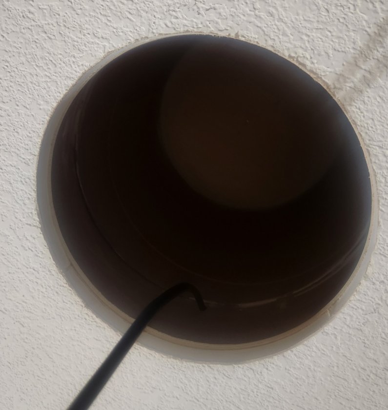 While in the attic, the speaker wire was passed through a snugly drilled hole in the side of the concrete tubes. The cylinder lid was sealed to the cylinder base with the foil tape.