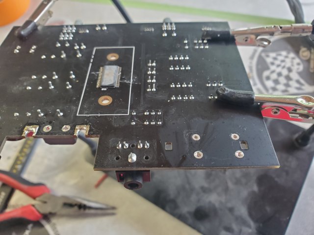 Aaaaand done for now. I'll bust into it more next weekend when caps and opamps arrive. If you notice the little 10uf50v caps standing up right next to the opamps, those suckers are what's getting replaced.