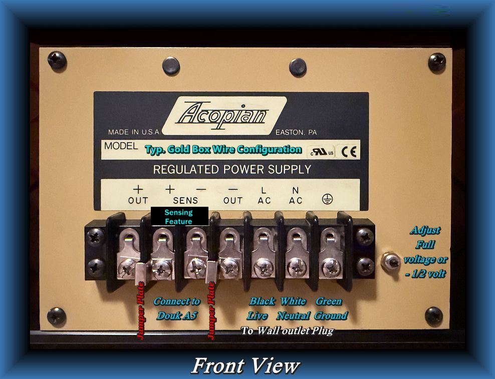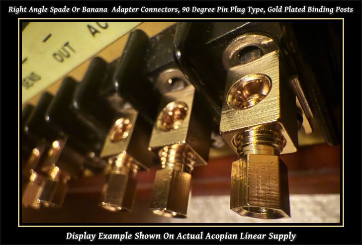 If someone decides to upgrade their power supply, using Acopian LPS Gold Box models, here are some connectors and cable options, my friends and I have used with success. Connectors for amp shown here $17 plus tax on Amazon. They have the simple option of using either banana plugs, or soldering wire directly to them. Actual photo of them installed on a Acopian A48HT850 LPS, although it works on all Gold Box model Acopians.