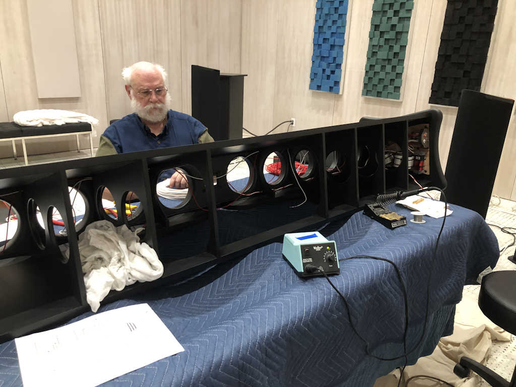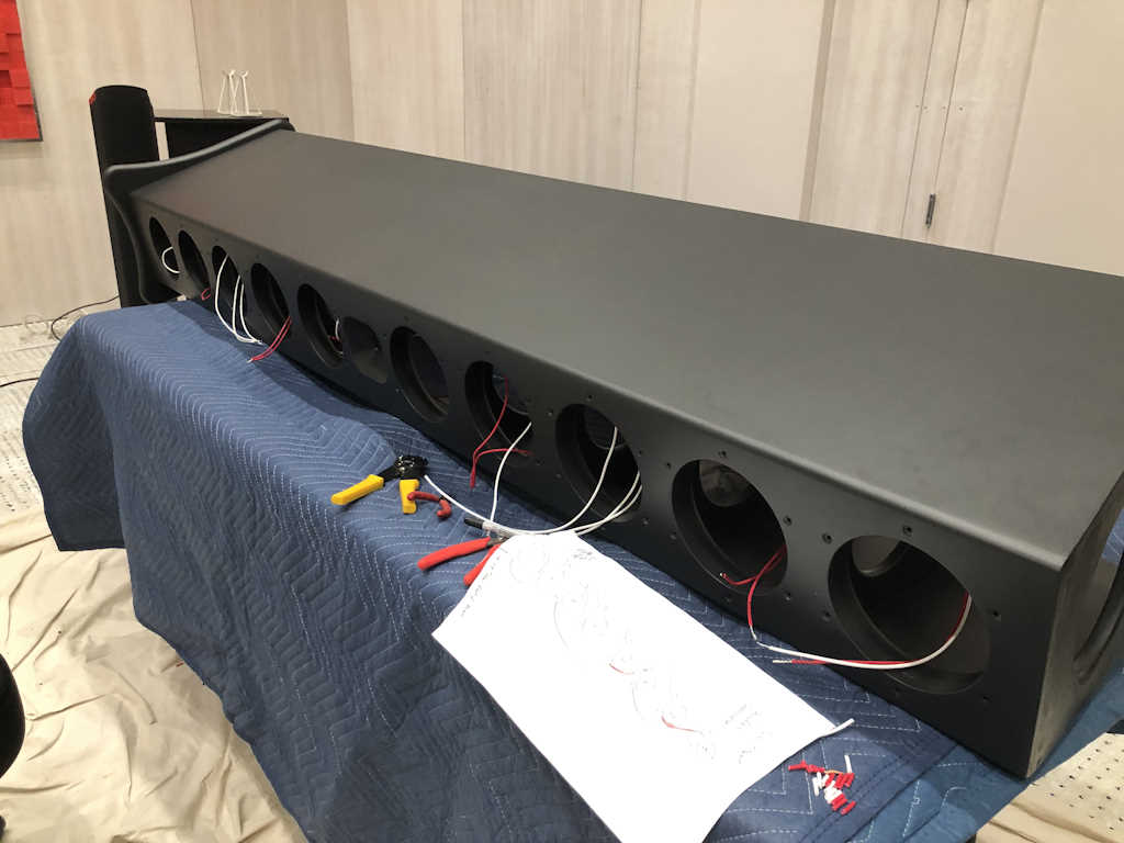 Tom built the GR Research Triple Threat subwoofers and commissioned Micheal Lundy to build the GR Research NX-Treme towers. Tom was very patient while Michael dealt with the medical challenges life threw at him. Now that Michael is better and working thru the backlog of commissions at Uilleam Audio it was Tom’s turn. I was pleased to help with the delivery, final assembly, and initial setup.