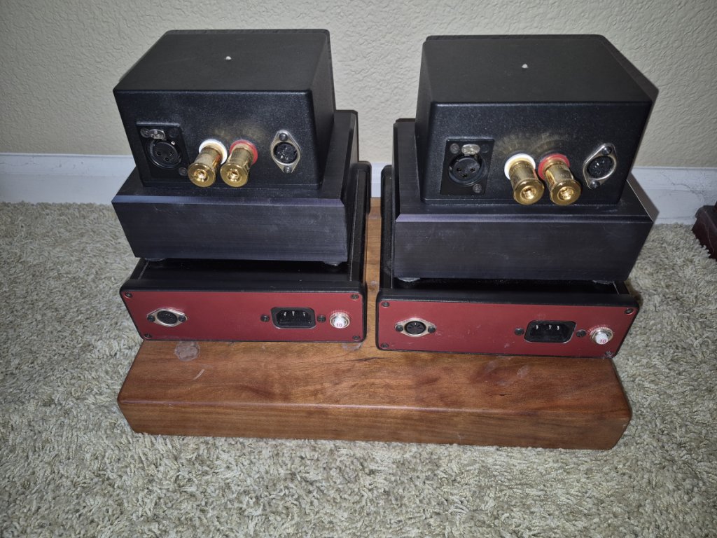 I unfortunately had to change to a smaller footprint stereo amp so I am parting with my Golden Cherry amps. They sound amazing and are a one of a kind pair with the factory linear power supply upgrade.