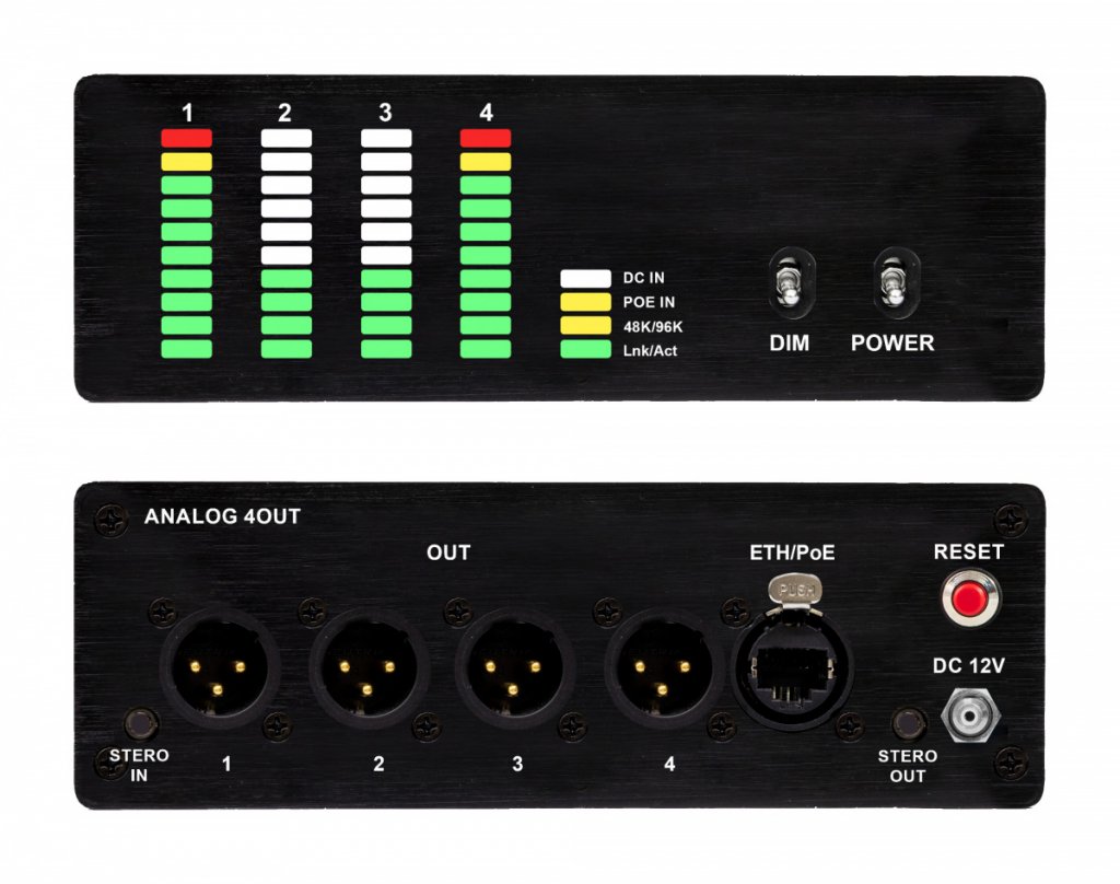 You can then send the Dolby Atmos decoded AoIP to computer's Dante Virtual Sound Card and use DSP for processing. You can also send the LFE channel to each sub woofer separately via AoIP to XLR converter.