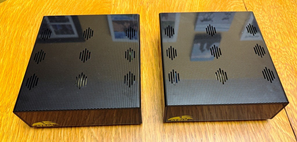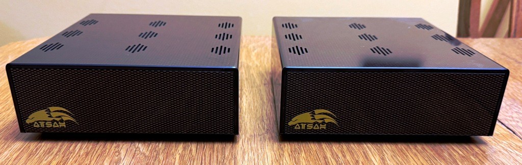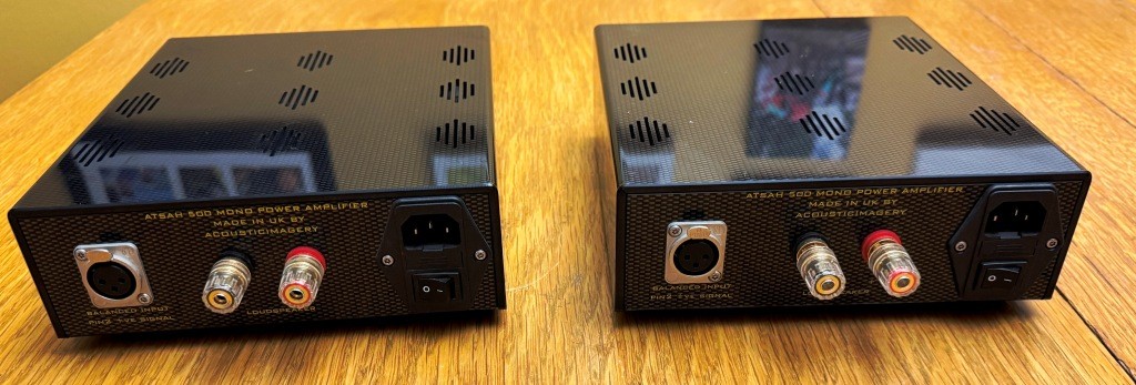 This is a set of Acoustic Imagery Atsah 500 monoblock amplifiers. No operational issues, in good shape cosmetically - they are used, but I don't see any significant marks, etc. Please see photos for condition. These amplifiers are based on the NCORE NC500 modules with the SMPS1200A700 power supply, which is a great combination putting out a bunch of reliable, clean power. These amplifiers have been used very little in the last seven years, as they were a backup setup I kept for another system and mostly sat in storage.