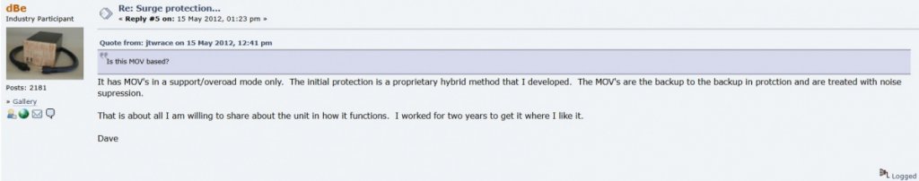 A few days ago, on another audio forum, Dave posted this: "The BUSSes never had MOVs, unless my customer requested them."