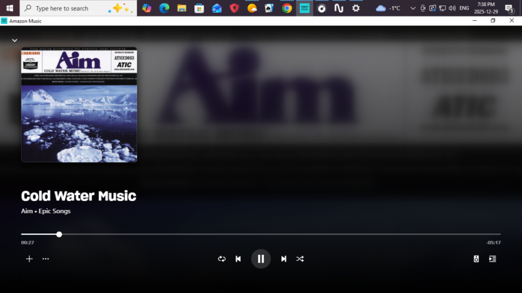 The first is Cold Water music. I was sleeping in bed listening to I think it was Galaxy Radio on cable. This song came on, woke me up because it was beautiful.