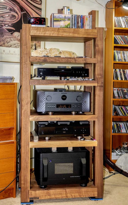 Since my last post...in 2019?...I have a new Massif-brand frontend-equipment rack, made of solid-walnut legs and shelves.