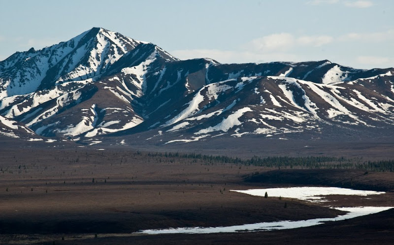 Denali, or Mt. McKinley isn't so easy to spot from the National Park because it's usually wreathed with clouds. Sorry, the purple isn't natural, but it sure beats the pale faded green/blue/yellow/brown it looked like after I got the contrast where I wanted it. In real life, it was a very pale faint blue tinged with brown with almost no contrast at all. I believe the mountain is about 90 miles away from where we were.