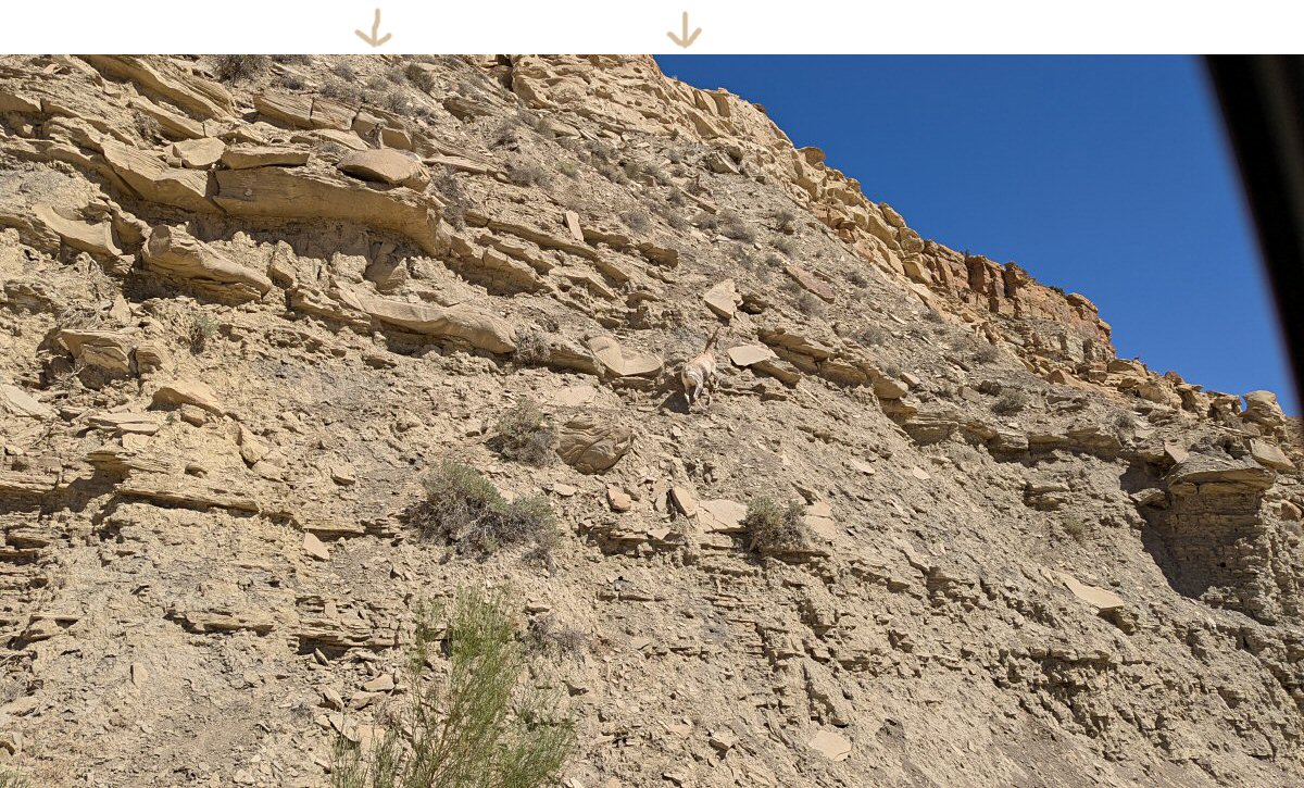 30 miles South of Kodachrome State Park on Cottonwood Canyon Road I had to make a sudden stop. Three bighorn sheep jumped out in front of my Outback and scrambled up the sheer cliff on my left. The Paria river was on my right so I guessed the sheep were going home after browsing and drinking.