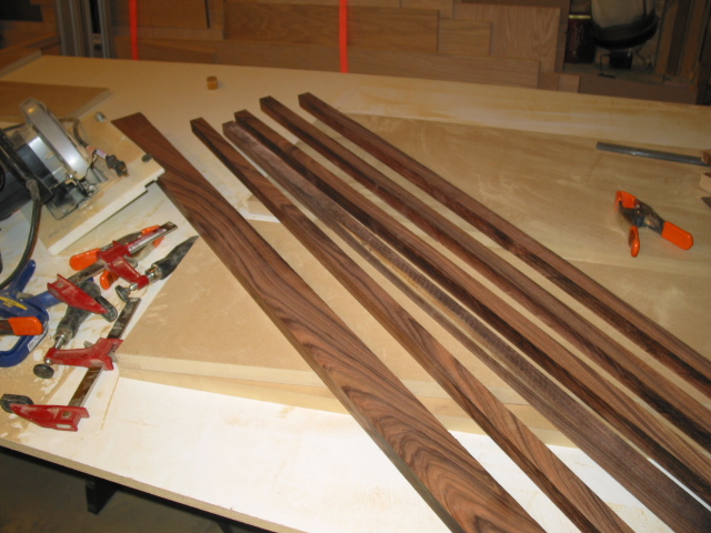 For glue up I used clamps, glue, and a Bradley nail gun.   I was going to use biscut joints, but the Bradley gun worked just as good because my cuts were pretty good.  Saved at least a day of glue up that way.