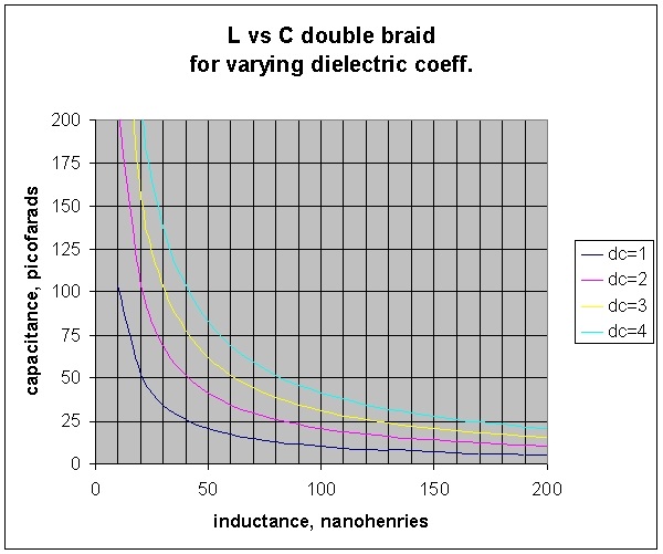 This graph depicts the tradeoff between L and C for all cables.  To wit, this particular one is of a coaxial braid pair, so there is no internal inductance to speak of.