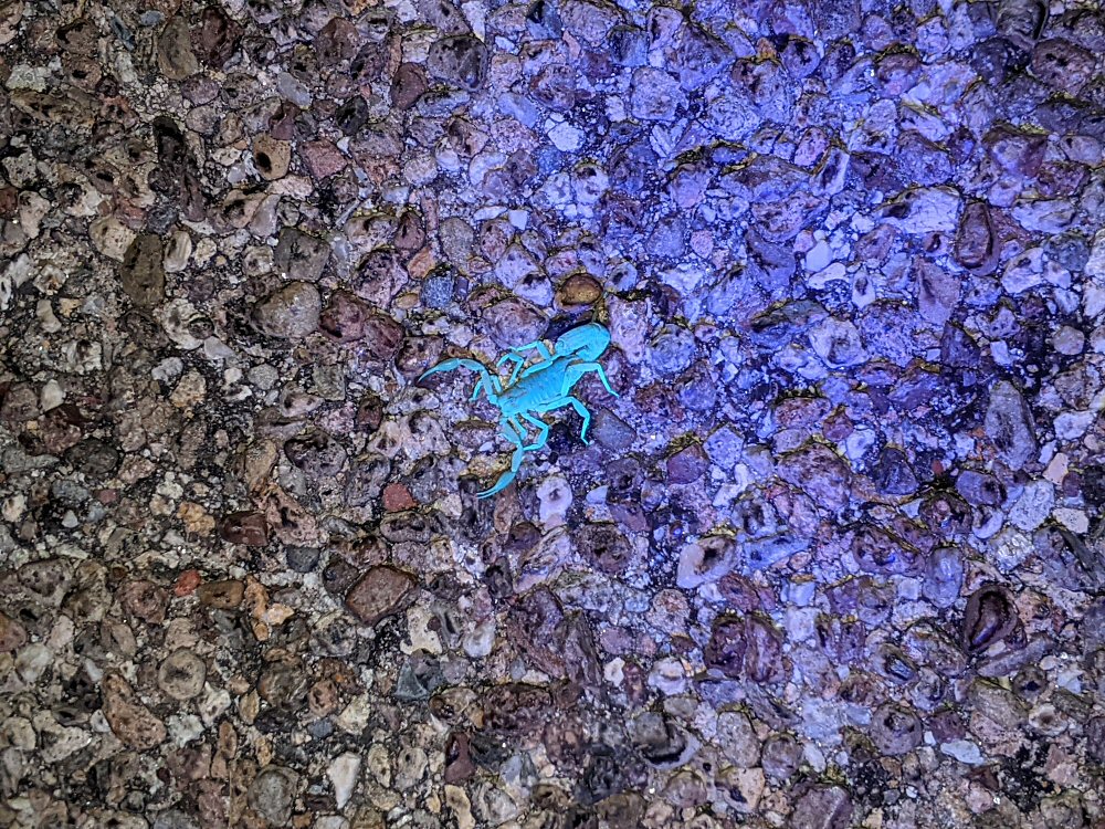 This scorpion was crossing the road, without a ultraviolet light he would be hard to see